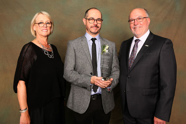 Johanne Jean, présidente de l'Université du Québec, le professeur Patrick Pelletier et André G. Roy, directeur général par intérim de l'Université TÉLUQ (crédit photo : Jocelyn Bernier)