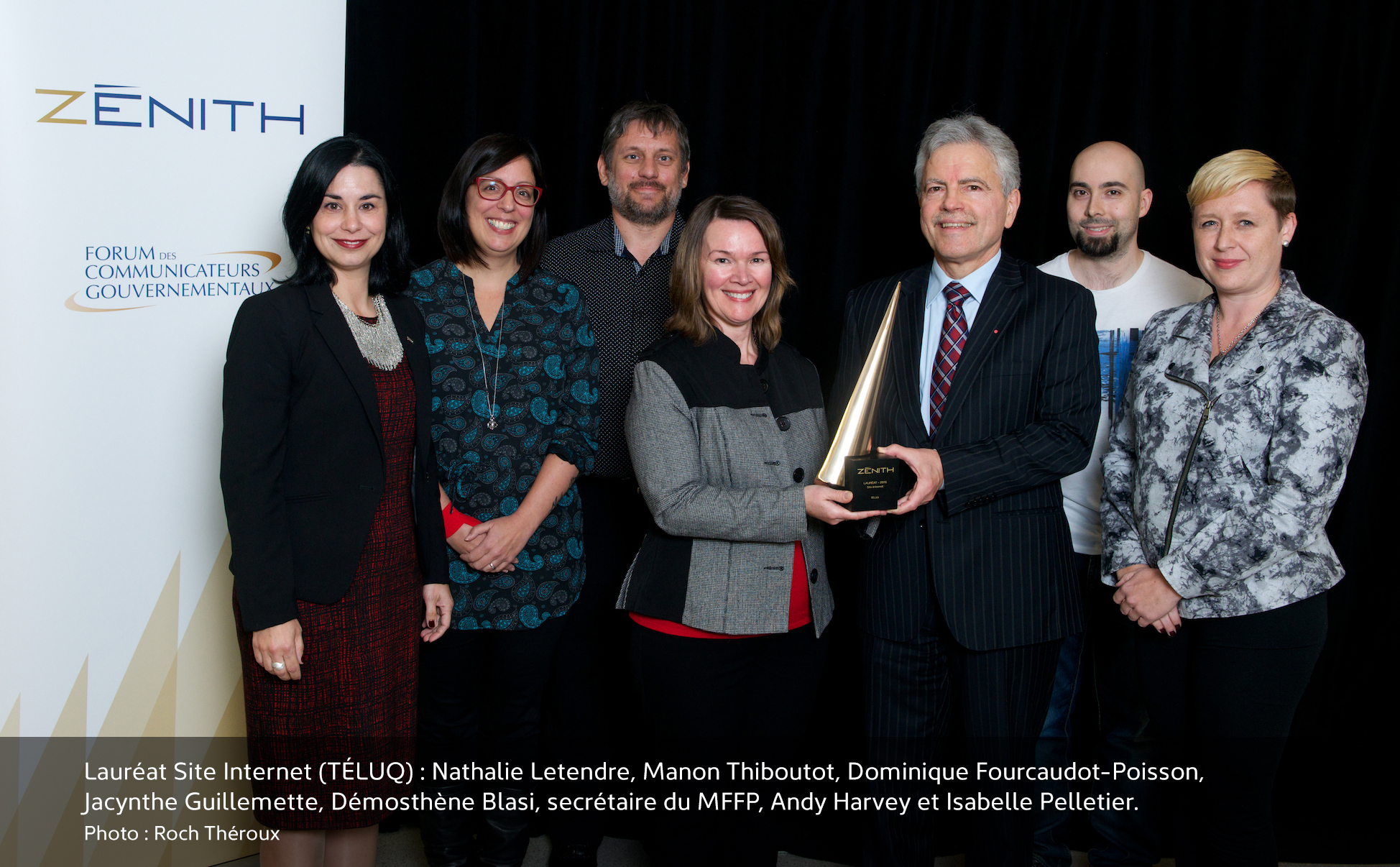Le concours des prix Zénith, organisé par le Forum des communicateurs gouvernementaux, récompense l’excellence et la qualité exceptionnelle du travail des artisans en communication gouvernementale. Ce prix s’adresse aux communicateurs qui sont au service d’une direction des communications d’un ministère ou d’un organisme du gouvernement de Québec.